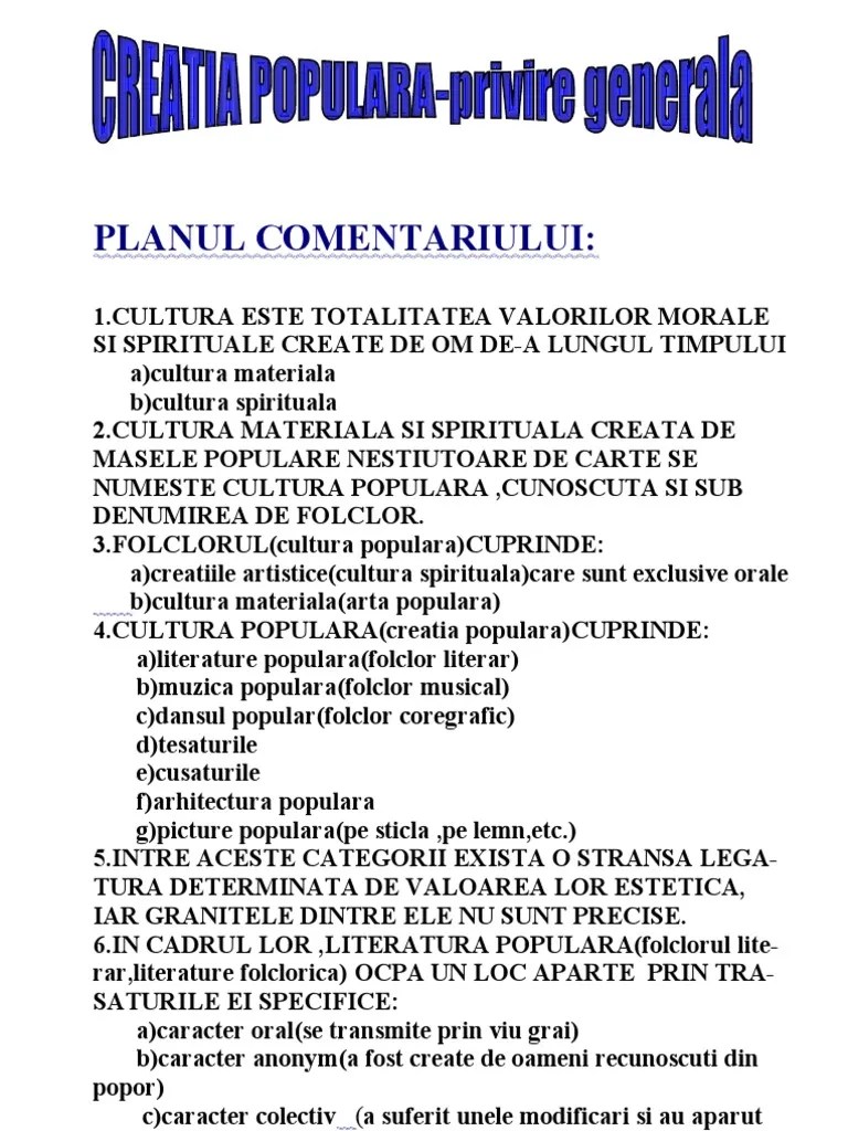 25.11.2009 · literatura populara influenteaza creatia culta din dubla perspectiva:. De dor, de dragoste, de jale, de revoltă, de haiducie, de înstrăinare, de cătănie ş.a.m.d., un cântec supus mereu improvizaţiei. Em sua estrutura é feita uma. 25.11.2009 · literatura populara influenteaza creatia culta din dubla perspectiva: În realitate un cântec cu forme diferite şi variate: „literatura poporană este totalitatea producerilor literare cunoscute în masa poporului, fie că ele sunt ale lui proprii, fie că sunt introduse pe calea scrierii şi devenite poporane. Trasaturile care definesc folclorul, in care se include si literatura populara, sunt:. Literatura populară este o parte semnificativă a folclorului romanesc, care înseamnă totalitatea producțiilor înțelepciunii unui popor (artistice, literare, muzicale,plastice, coregrafice, dramatice) create şi transmise prin cuvânt şi practici de către popor particularităţi: